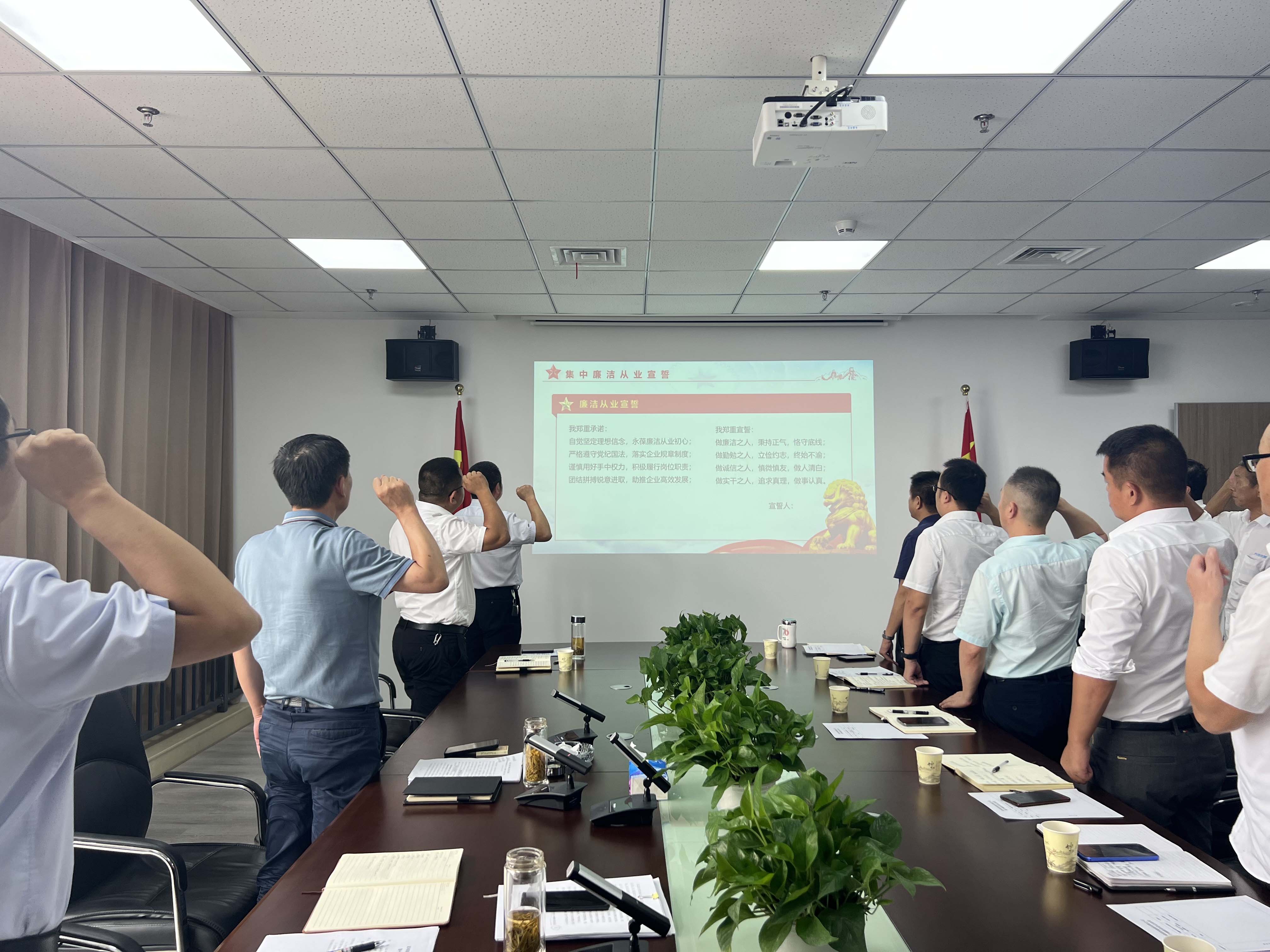 會(huì)議傳達(dá)學(xué)習(xí)了習(xí)近平總書記關(guān)于從嚴(yán)治黨的重要論述(摘選),開展了集體廉潔從業(yè)宣誓,公司黨總支書記、執(zhí)行董事、總經(jīng)理何愛良對大家進(jìn)行了集體廉政談話。
