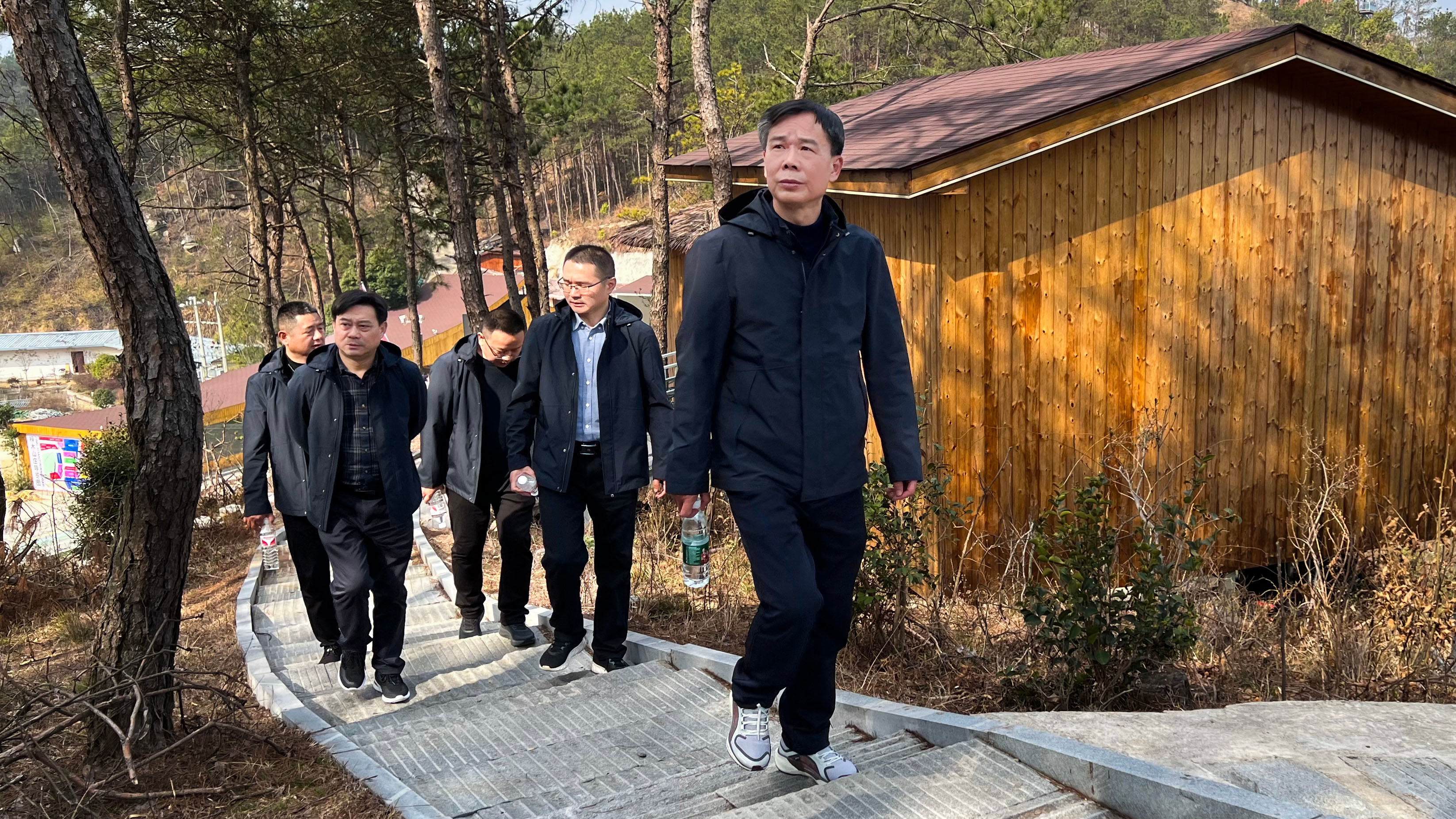 充分熱身后,在公司黨總支書記、執(zhí)行董事、總經(jīng)理何愛良帶領(lǐng)下,大家興致勃勃向山頂行進(jìn)。在這個(gè)季節(jié),光照在萬物上,一切都是欣欣然、活潑潑的樣子,大家三五成群結(jié)伴而行,踩著林蔭間的階梯而上,在山野間徒步,打開五感,享受風(fēng)的吹拂、沁人的負(fù)氧離子,滿載春日能量,一路上談笑風(fēng)生。經(jīng)過努力攀爬,終于到達(dá)了山頂觀景臺(tái),這里是觀賞白蓮河“千島湖”美景的最佳觀賞點(diǎn)。