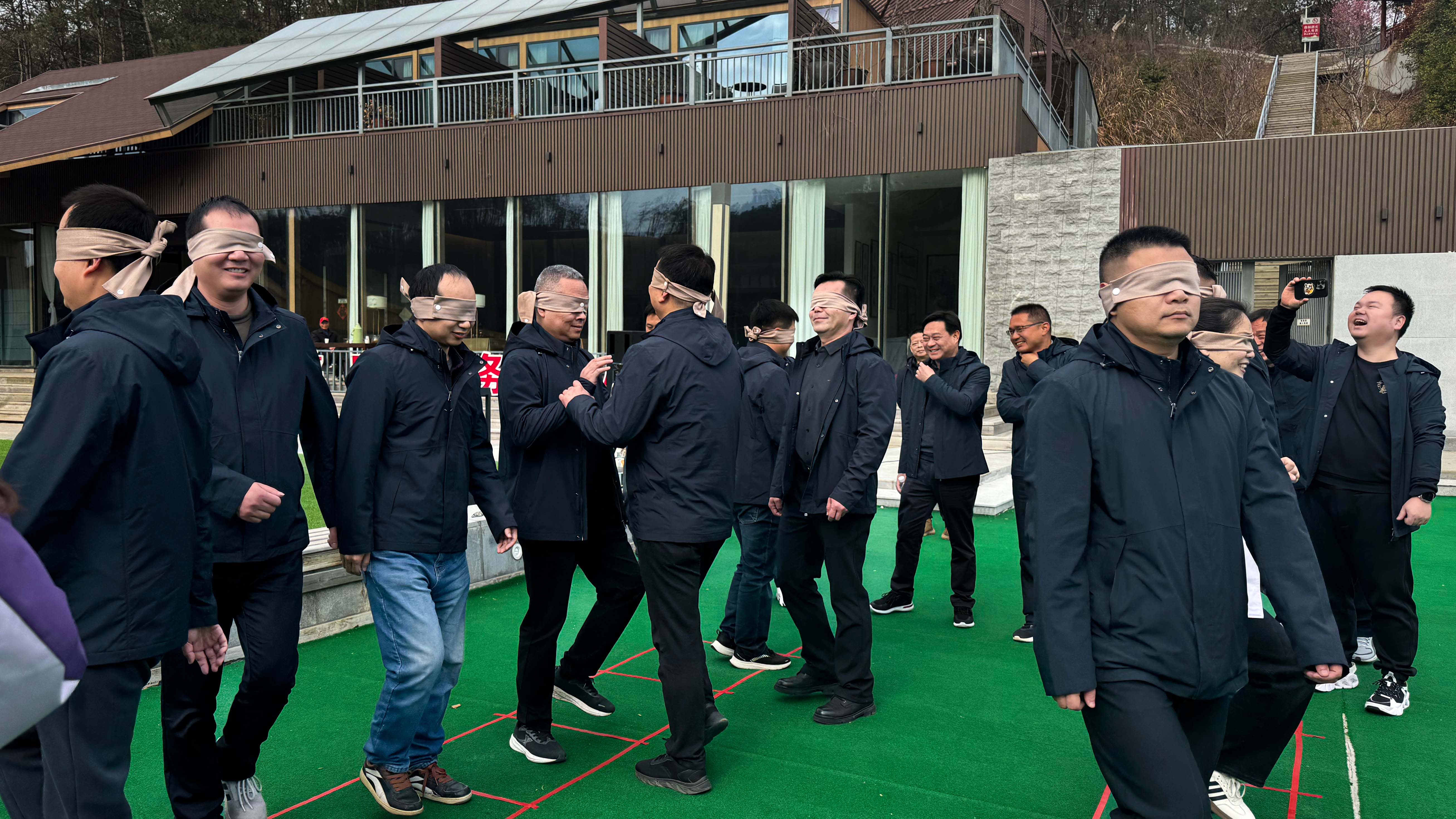 在正式徒步登山之前,大家進(jìn)行了一場(chǎng)趣味滿滿的熱身活動(dòng)——“蒙眼原地踏步走”。原地踏步本是一項(xiàng)簡(jiǎn)單的運(yùn)動(dòng),但附加上蒙眼這一特殊條件,便讓人有些“摸不著北”,隨著不少同志先后“出圈”,大家笑得前合后仰,現(xiàn)場(chǎng)氣氛火熱非凡。